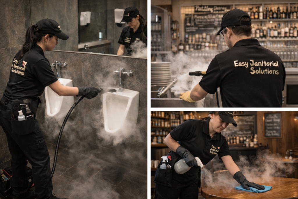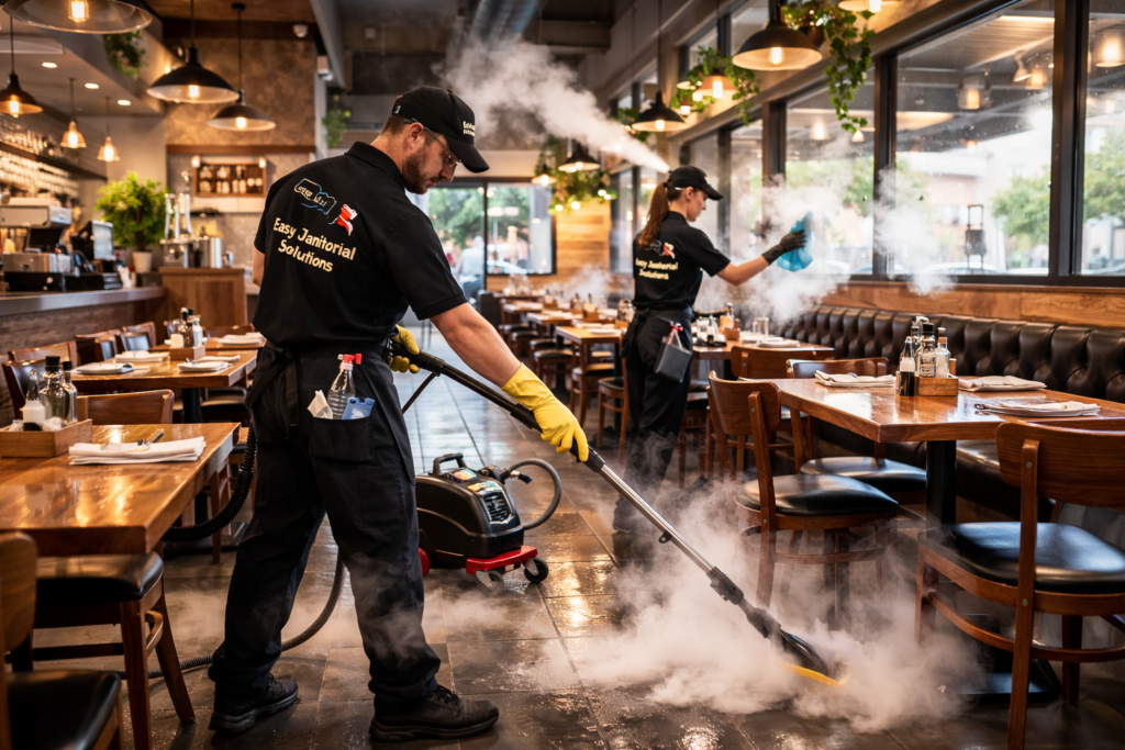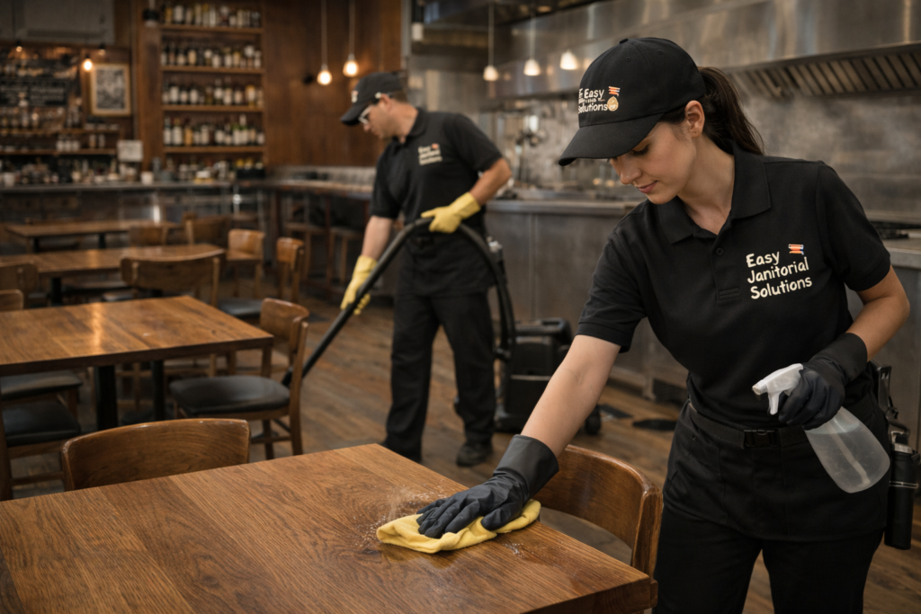 Easy Janitorial Solutions provides professional restaurant cleaning services across Ontario, helping food businesses maintain spotless, safe, and health-code compliant environments. From daily restaurant cleaning to deep commercial kitchen sanitization, our team delivers reliable results for restaurants, cafés, and commercial kitchens.